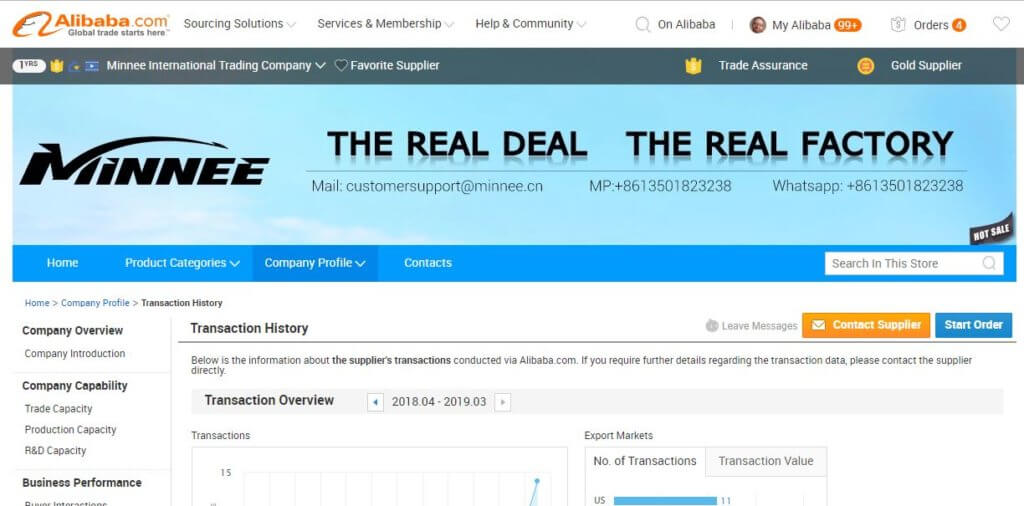 In the last six months, Minnee International Trading Company has landed 41 deals worth $10,000. And while that is a low number (averaging out to $243.00 per transaction), most of those sales came from US businesses. Minnee International is also relatively new, having been on Alibaba for just one year.