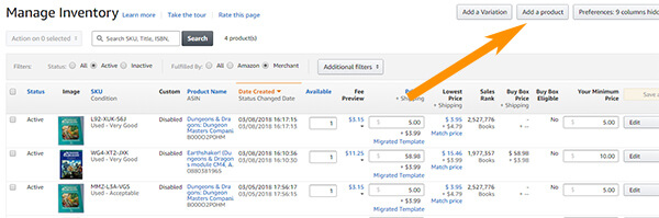 To add a product on Amazon, all you have to do is click on the “Add a Product” button on your Amazon Seller inventory page:
