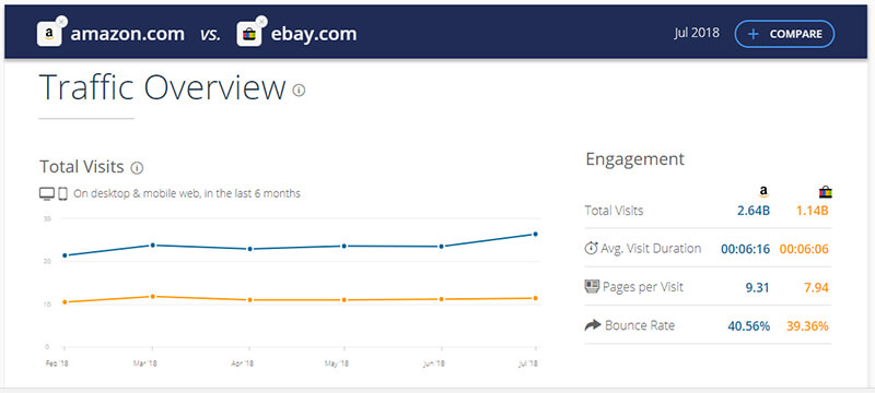 Amazon spent the last 25 years building a brand reputation. And it’s paid off! Amazon receives 2.64 billion visits to just their US site each month. That’s more than twice the amount of traffic that Ebay gets!