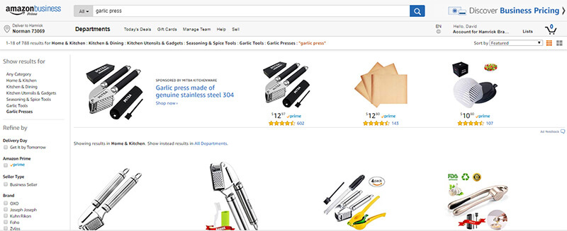 First, go on Amazon and do a search for a product. I’m going to search for garlic presses.