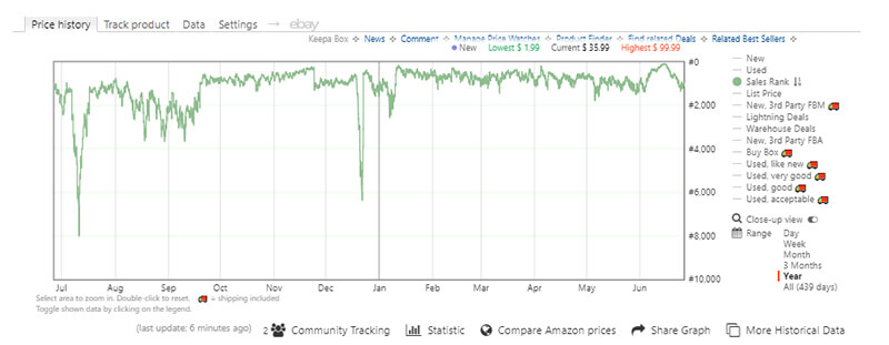 As you can see, the best-seller ranking for this product stays well above 2,000 for most of the year. The only time it dipped was in late December and late July of 2017. Probably because they ran out of stock!