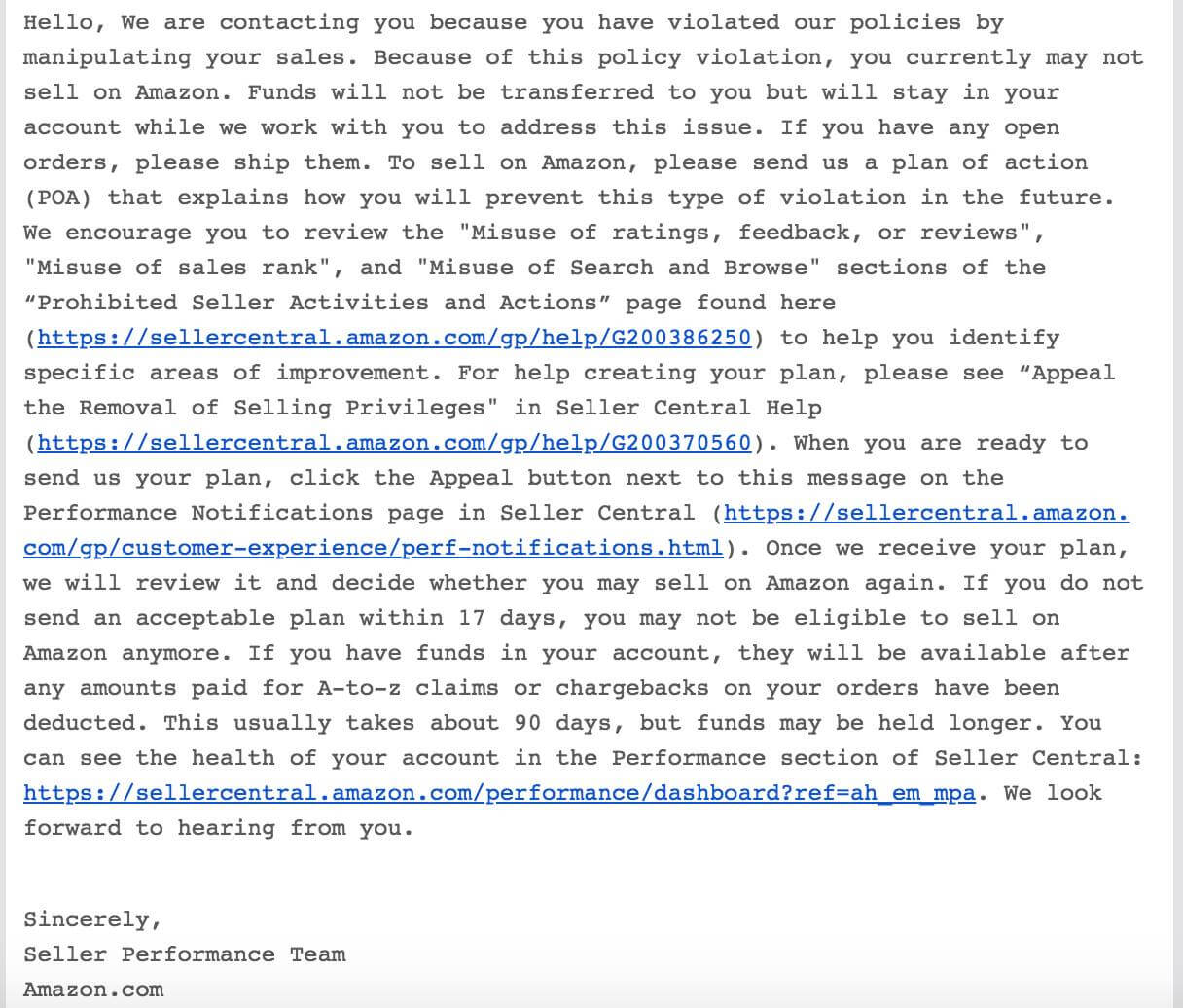 “I launched my first product and did the discounted giveaways using Jumpsend. After about week I received this email from Amazon stating I violated their rules. Has anyone else gotten this?” – Mohsin