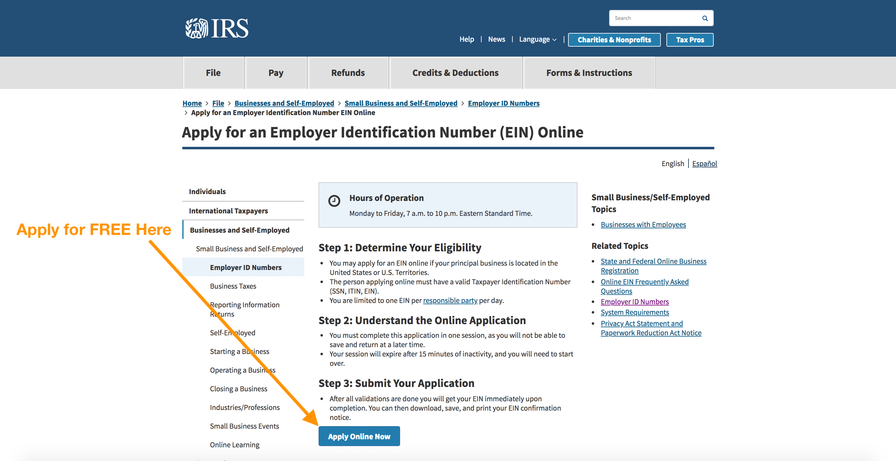 An EIN (Employer Identification Number) is a unique 9 digit identification number that is assigned to a business entity so that it can easily be identified by the IRS. Think of it is as your business’s own social security number. Once you’ve set up your LLC you can then get an EIN for free by applying online at the IRS’s website.
