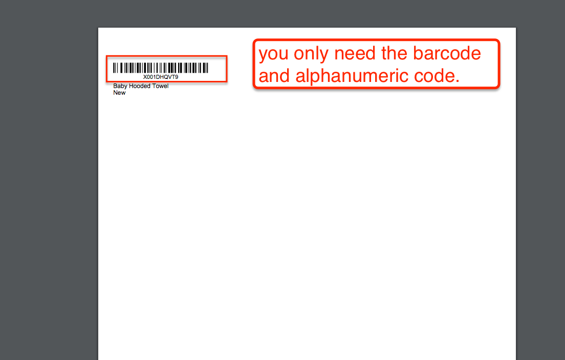 Simple as that. You can send this to your supplier and designer, and ensure that your packaging is correctly labelled for the Amazon fulfillment centre.