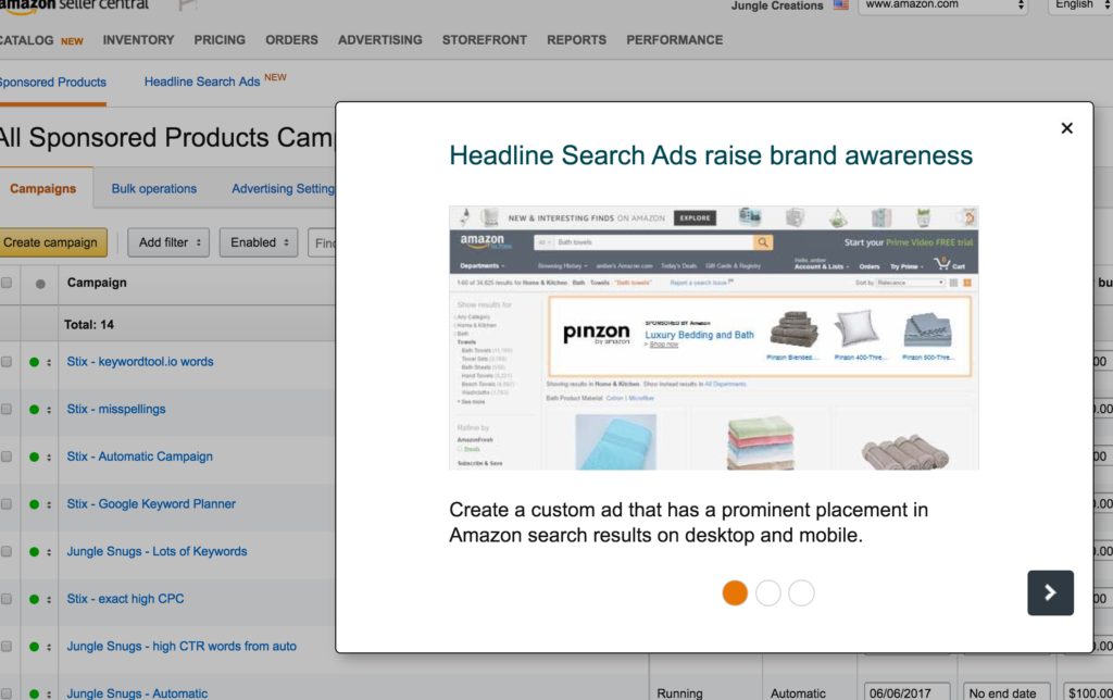 And that’s the same dynamic that we’re starting to see with Amazon products: sellers now have more options to purchase ads to get their product in front of relevant customers. Amazon has made big strides in improving the targeting options and reporting, and most recently a big one: Headline Ads are now available in Seller Central!