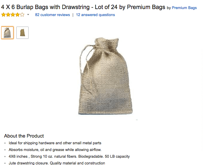 The first product that met the criteria was a burlap bag: