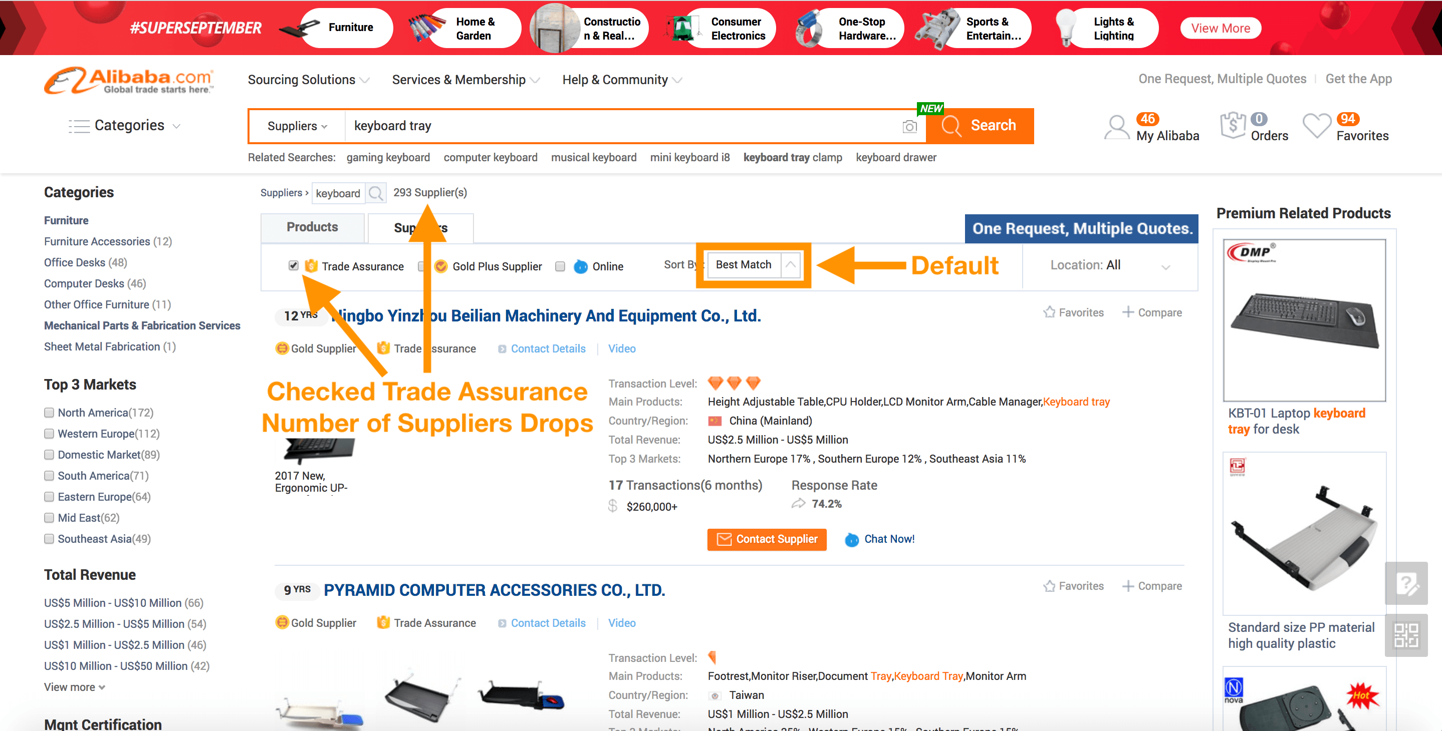 Now, I’m down to 293 suppliers. From here, I sort by “Best Match.”