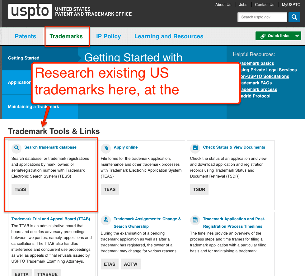 From here, you can search using various methods; using basic design marks, ownership, word or design marks. When you are searching for trademarks, you want to make sure that your trademark is not going to be too similar to cause confusion.