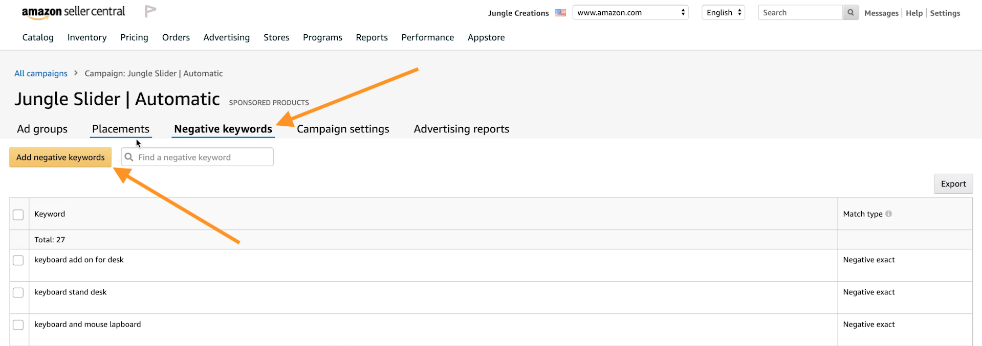 Now Amazon knows not to show my listing for this particular keyword in this automatic campaign.