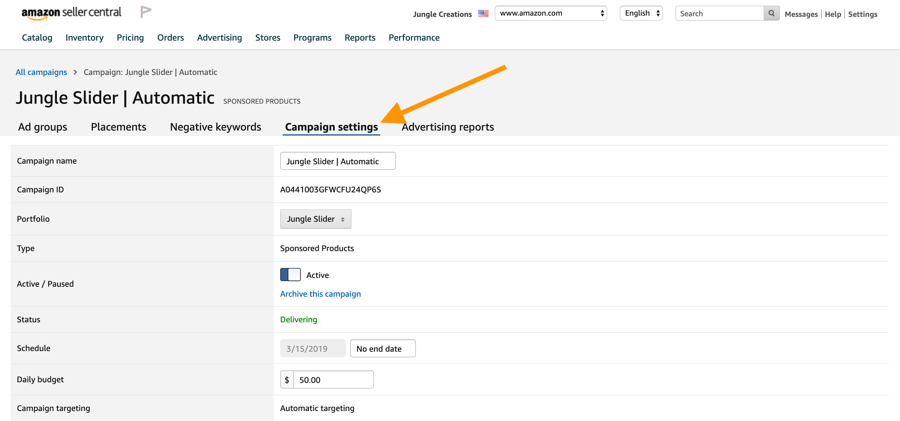 The good news is that with the newer Seller Central ad platform, I can see my Campaign Settings.