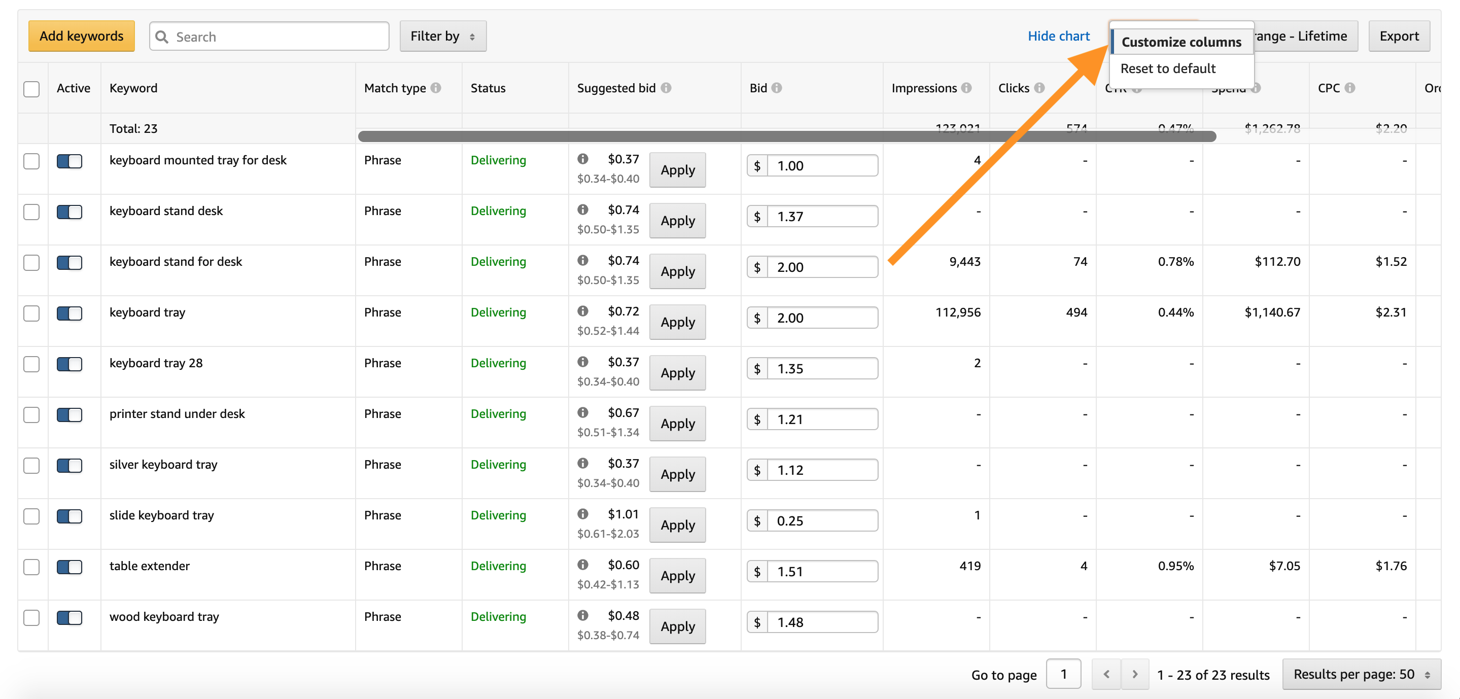The second way to optimize your automatic campaigns is by adjusting your bids.