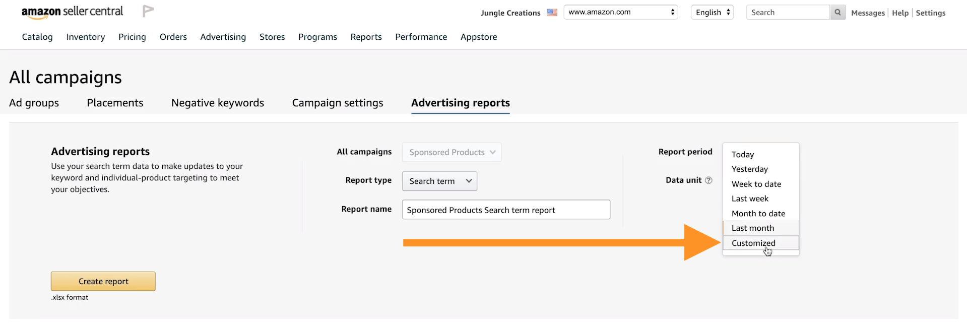 I’m going to choose a reporting period that covers the entire length of this campaign. To do that I need to select Customized under the Report period field.