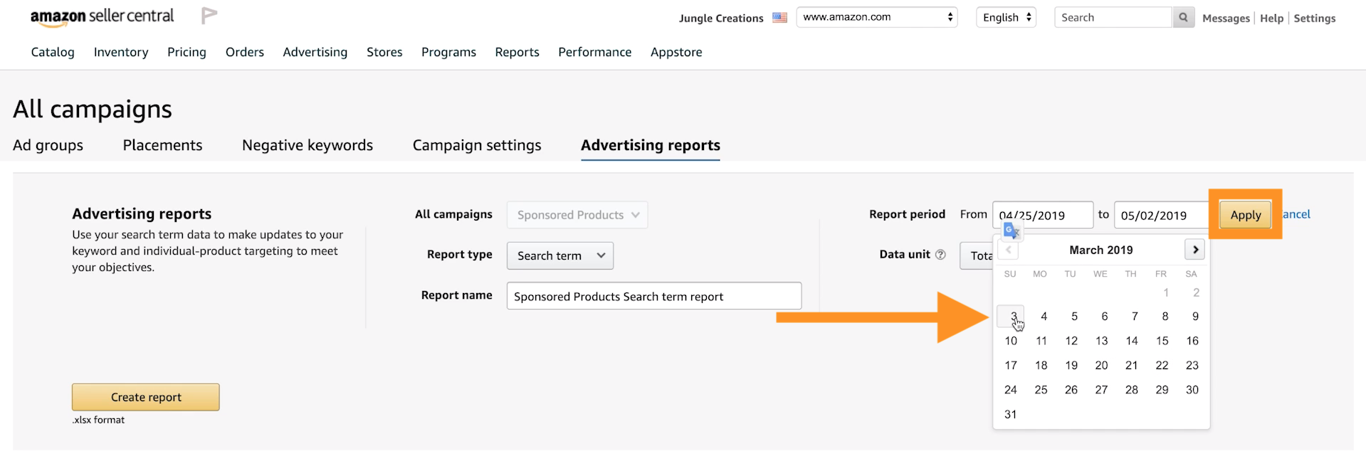 Then I’m going to go as far back as Seller Central will let me. In this case, I can go back as far as March 3rd.