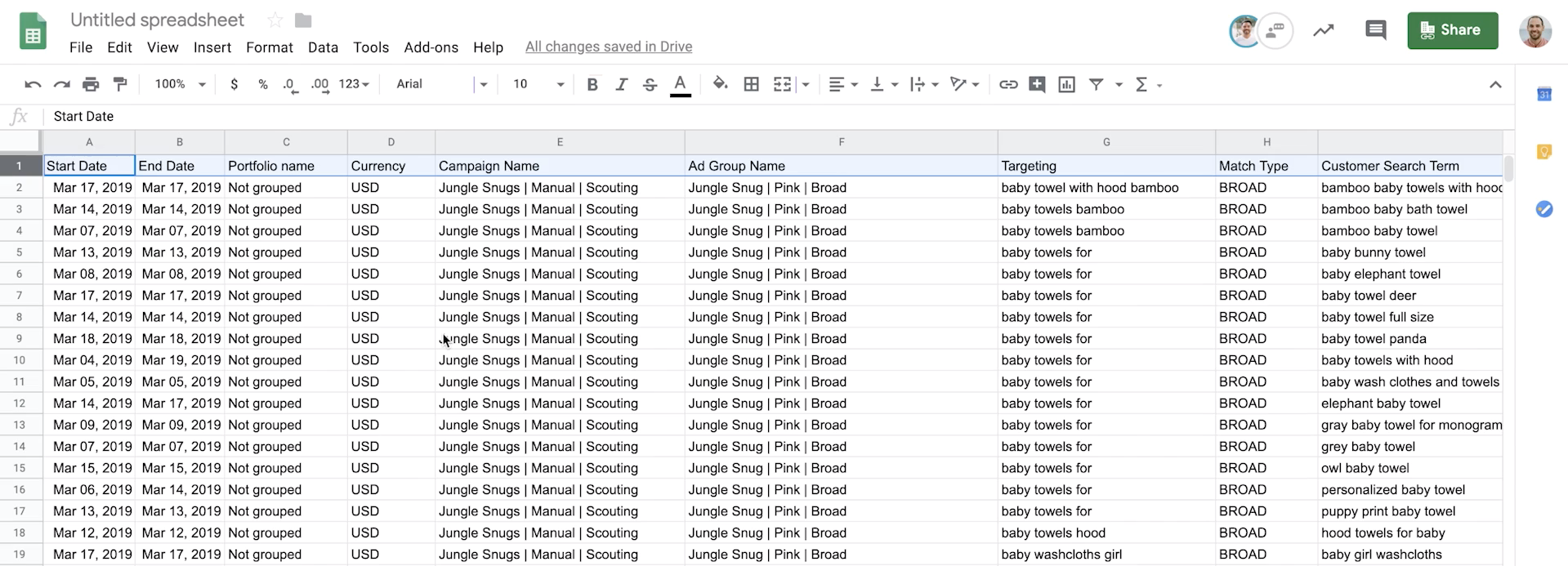 Okay! Now it’s time to optimize our manual campaigns, which means I can optimize on a keyword-level instead of on a campaign-level, though I will need to improve each campaign and ad group separately.