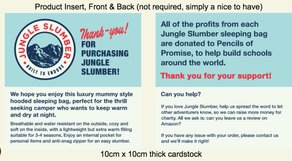For our sleeping bags, we bought 1500 upfront, with plans to give away 75 via coupons and giveaways. The mindset is that we will invest in marketing and product launch costs upfront, so that we can build a long term business with this product.
