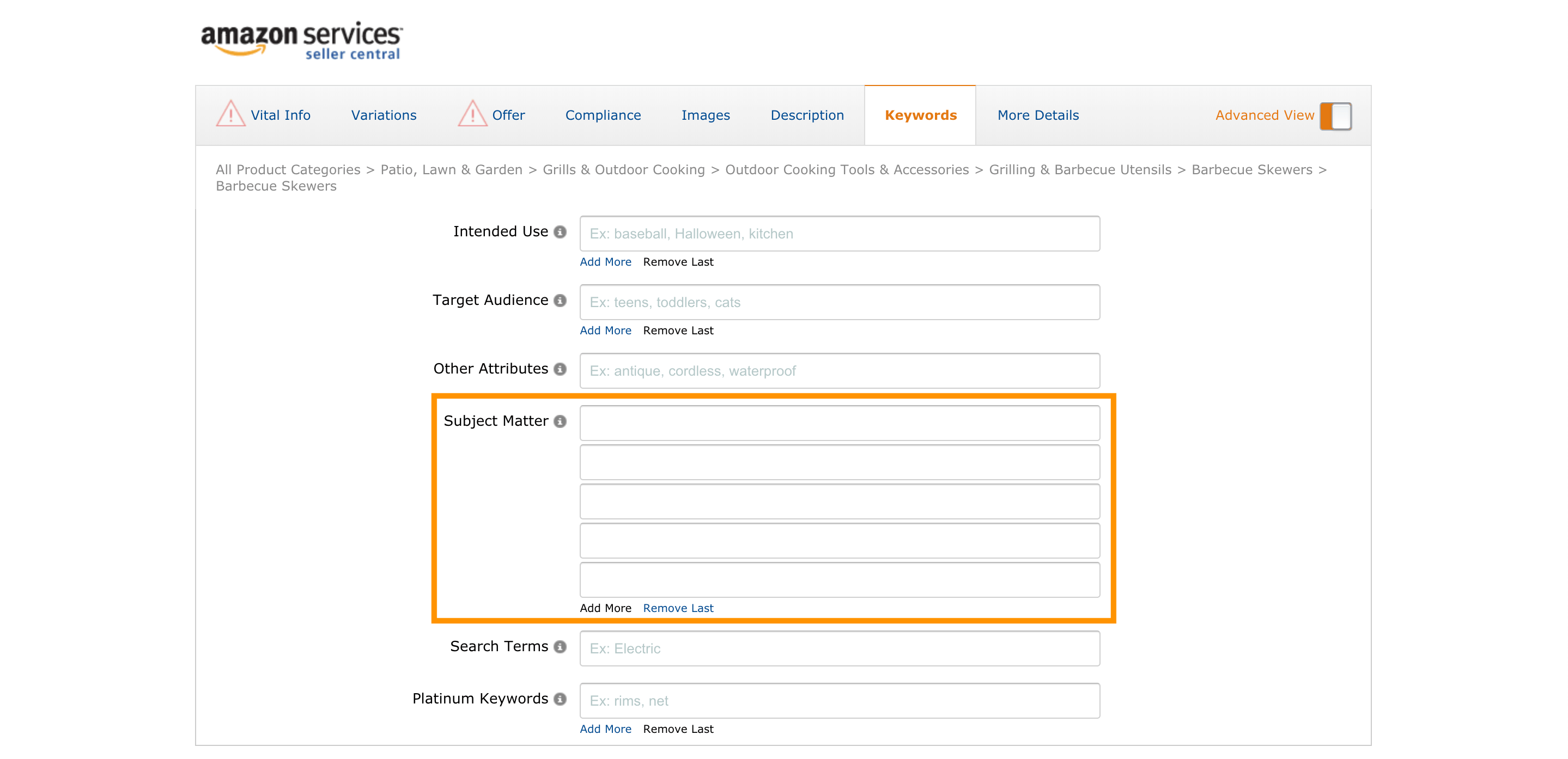 Onto the last hidden field, “Subject Matter”. This is an important field as it also gets indexed by Amazon.